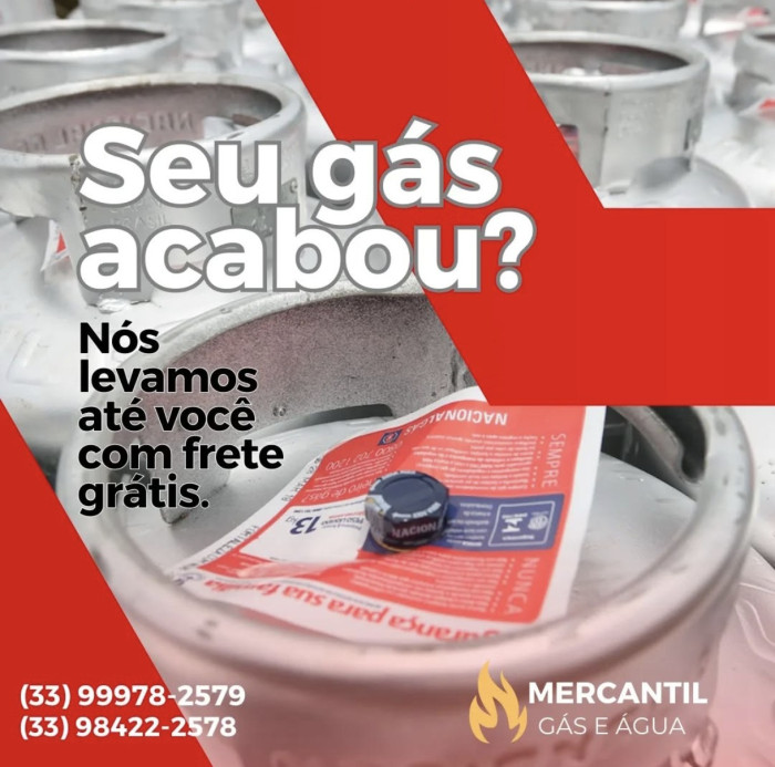 A Mercantil Gás é uma revenda autorizada Nacional Gás, localizada em Manhuaçu-MG, oferecendo entrega rápida e segura de gás de cozinha para residências e comércios. Também trabalhamos com água mineral e prezamos pelo atendimento ágil, qualidade no serviço e total segurança no abastecimento.